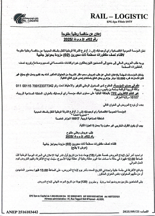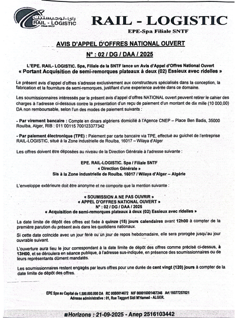 Avis d’appel d’offres national ouvert N°02/DG/DAA/2025